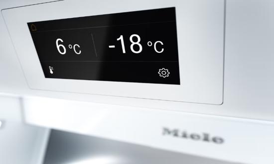 Intuitivno upravljanje za najviši nivo udobnosti u radu: inovativni TFT displej visoke rezulucije osetljiv na dodir omogućava vam da podesite različita podešavanja direktno na Miele rashladnom uređaju/vinskoj jedinici. Jednostavnim dodirom prsta podešava se temperatura ili osvetljenje, sve u skladu sa vašim željama. Možete takođe izmeniti pozadinsku boju displeja osetljivog na dodir – izaberite elgantnu crnu ili suptilnu belu boju.